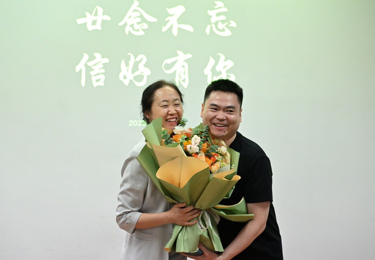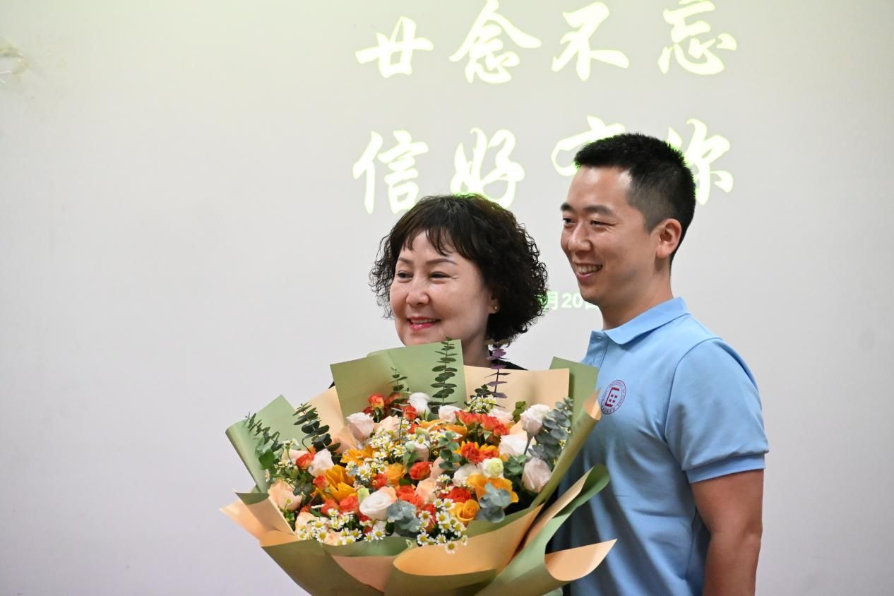 校友代表李韵卓作为行业优秀从业者,分享了自己毕业后的职业发展历程,感谢学院的培养与老师的悉心指导,并结合自身经验为学弟学妹们提供了职业规划建议。“没有老师的谆谆教诲,就没有我们今天的成长。”在毕业生感谢老师环节,校友们代表全体2005届毕业生向英锋、陈京、孙小红、胥桂仙、林旺、李霞丽等六位教师献上鲜花,感恩之情在鲜花与掌声中传递。